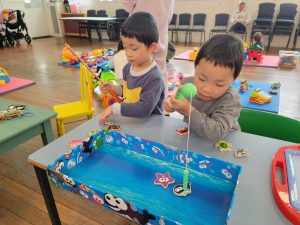 kids playing fishing